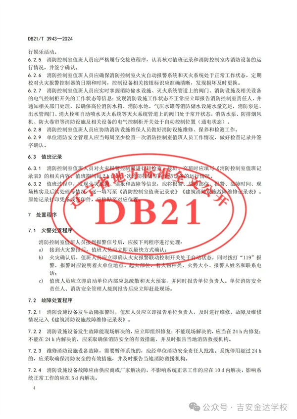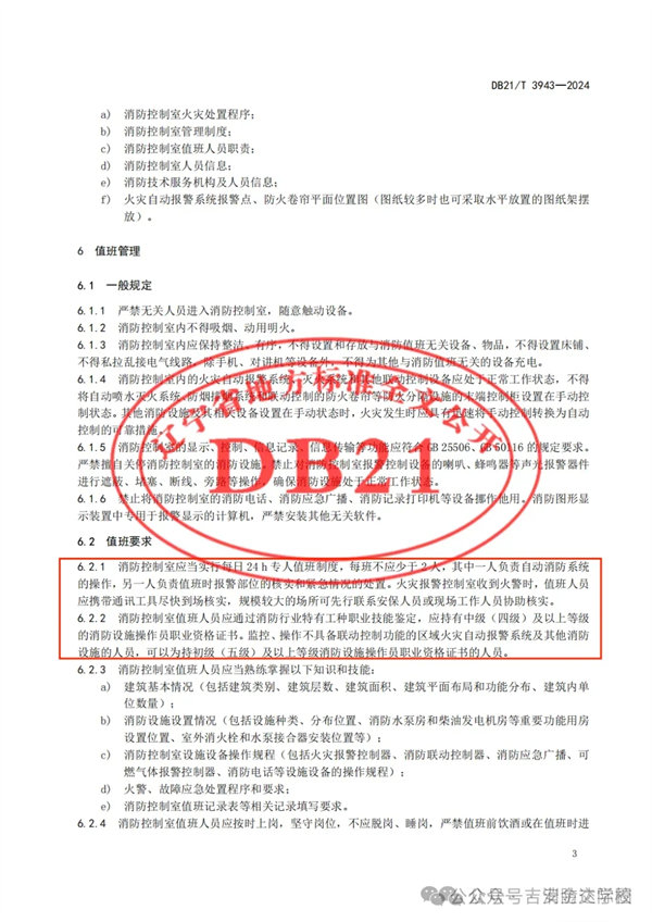 遼寧省地方標(biāo)準(zhǔn)《消防控制室管理》將于2024年4月30日起正式施行!有關(guān)值班要求如下: